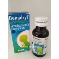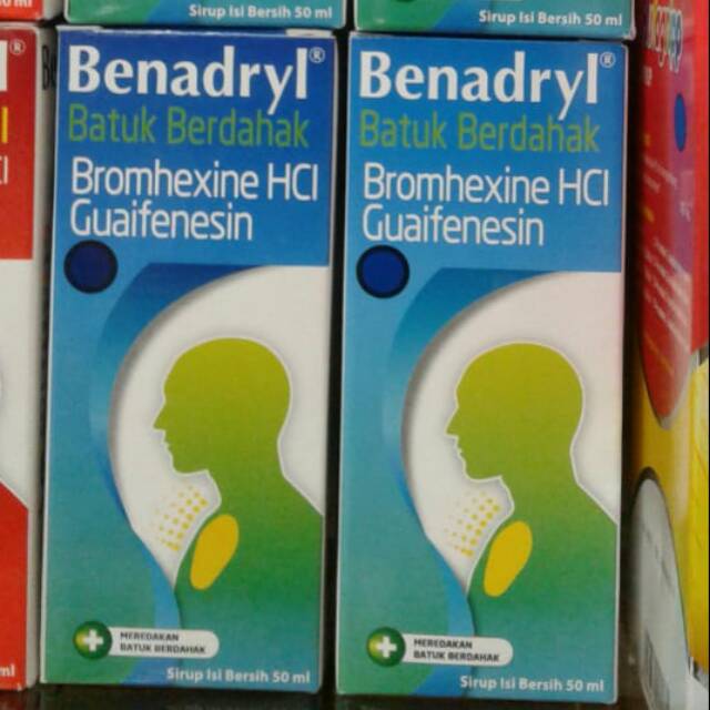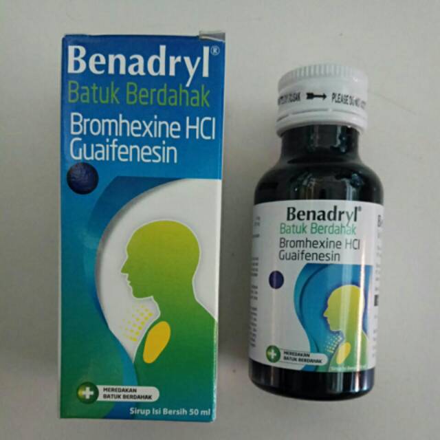 Benadryl batuk berdahak untuk meredakan batuk berdahak dan tidak menyebabkan kantuk. Benadryl batuk berdahak mengandung dual zat aktif bromhexin hcl dan guaifenesin yang bekerja sebagai iritan pada saluran pernafasan di mana saat batuk volume mukus ditingkatkan pada saluran napas serta menurunkan viskositasnya menjadi lebih encer sehingga dahak lendir lebih. Batuk seringkali dijelaskan sebagai batuk berdahak atau batuk kering. Benadryl batuk berdahak merupakan obat yang digunakan untuk mengurangi dan mengencerkan dahak pada saluran pernapasan.